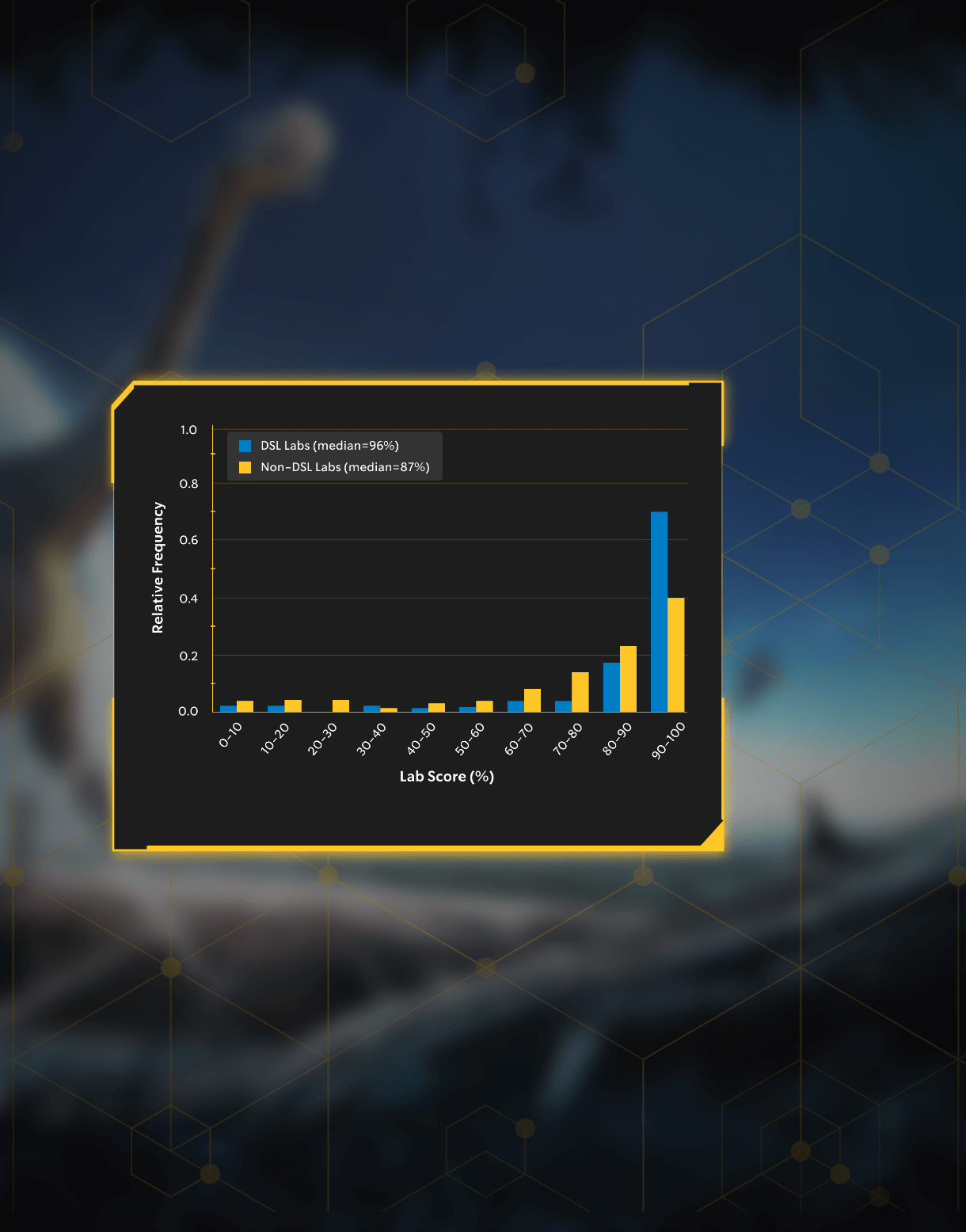 Those in DSL courses were 1.7 times more likely to receive an “A” in their lab assignments with a median score of 96%. Among the diverse population at ASU, each group performed better than their non-DSL peers, which was especially profound in students from historically marginalized groups. Students were also highly engaged in the content, rating the experiences on average 4.4 out of 5.